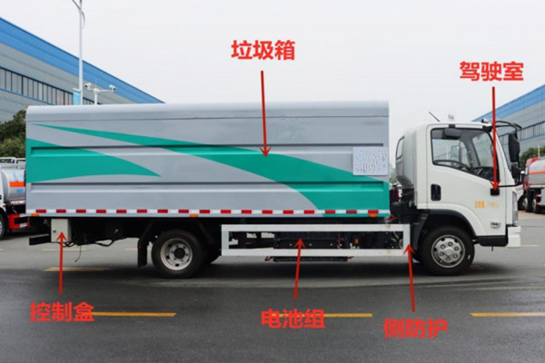 其它 | 1.ABS型號:YC-ABS,廠家:天津英創匯智汽車技術有限公司,選裝ABS型號:48610X6XX0,廠家:西安卡邁電子科技有限公司,選裝ABS型號:APG3550500A,廠家:浙江亞太機電股份有限公司;選裝ABS型號:ABS(液壓)-12V,廠家:襄陽東風隆誠機械有限責任公司;選裝ABS型號:YF8,廠家:武漢元豐汽車電控系統有限公司;2.電池種類/生產企業: 磷酸鐵鋰蓄電池,單體型號:CB220,廠家:寧德時代新能源科技股份有限公司,總成型號:L173TB1,廠家:寧德時代新能源科技股份有限公司;3.驅動電機額定功率42kW,峰值功率100kW;4.可選裝ETC車載裝置;5.側面防護裝置材料為Q235,連接方式為螺栓連接;后防護裝置材料為Q235,連接方式為螺栓連接,后部防護裝置的斷面尺寸Φ100mm,離地高度為330mm;6.液壓尾板收起狀態的水平長度為280mm;尾板質量為230kg;7.該車專用功能是用于桶裝垃圾的裝卸及運輸,專用裝置為垃圾廂和液壓尾板,用于升降垃圾桶,車廂頂部可向上升起,不可左右開啟;8.貨廂/欄板重量(kg)/材質/厚度(mm)對應關系為:775/Q235/3(底板),Q235/1.5(前墻板,左墻板,右墻板,頂板),整備質量不含隨車工具,不含備胎;9.僅選用2800mm軸距. | ||