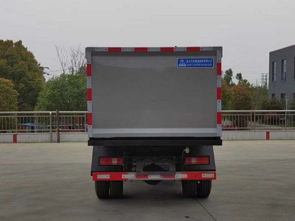 其它 | 電池種類/生產企業:磷酸鐵鋰動力電池/寧德時代新能源科技股份有限公司;ABS系統生產廠家/型號:廣州瑞立科密汽車電子股份有限公司/CM4YL;側防護材料采用Q235,焊接連接;后防護材料采用Q235,焊接連接;截面尺寸(mm):50×100;離地高度:420mm;專用裝置:垃圾箱、自裝卸裝置,實現對垃圾的清理,轉運作業功能,選裝直接供電的ETC,該車配備隨車工具,無備胎,清洗液,冷卻液等,僅選用底盤軸距3000mm,前懸1180mm改裝;驅動電機類型:永磁同步電機,額定功率60kW,峰值功率140kW,生產企業:精進電動科技股份有限公司;貨廂材質:Q345;貨廂厚度:側板3mm,底板4mm,上板2mm,前板3mm,后斜板3mm,重量為:420Kg | ||