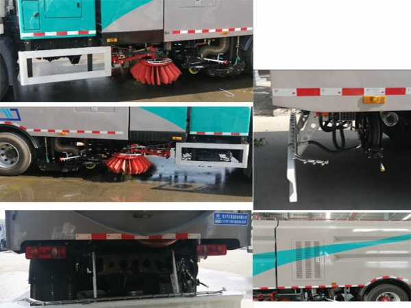 其它 | 1、專用裝置:垃圾箱體,掃刷裝置組成,為城市道路洗掃專用車;2、防護材料:Q235A,左右側面防護由專用裝置(掃刷)代替, 離地高度為(mm):200,后下部防護與車架采用焊接連接,后下部防護尺寸:50×230(mm),離地面高度400mm;3、選裝駕駛室前角擾流板,選裝前霧燈,選裝臥鋪側窗裝飾板,選裝駕駛室頂部中間三個裝飾燈,選裝僅前面罩、燈具和后視鏡局部改型駕駛室; 4、電池種類/型號/生產企業: 磷酸鐵鋰電池//6LH3L8或L228H01/寧德時代新能源科技股份有限公司;5、ABS型號/生產企業:J ABS/焦作博瑞克控制技術有限公司,選裝清掃裝置及后部噴灑,隨底盤可選裝限速裝置;選裝檢修門樣式,選駕駛室前攝相頭,選裝電池水冷機組,輪轂外觀 | ||