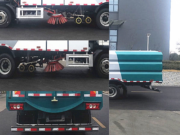 12、左右立掃為單掃盤,減少了掃刷的數(shù)量和掃刷消耗量,能降低使用成本。掃刷上加裝噴水裝置,用于噴霧降塵。左右立掃分開控制,可實(shí)現(xiàn)右掃和全掃等不同的作業(yè)模式。